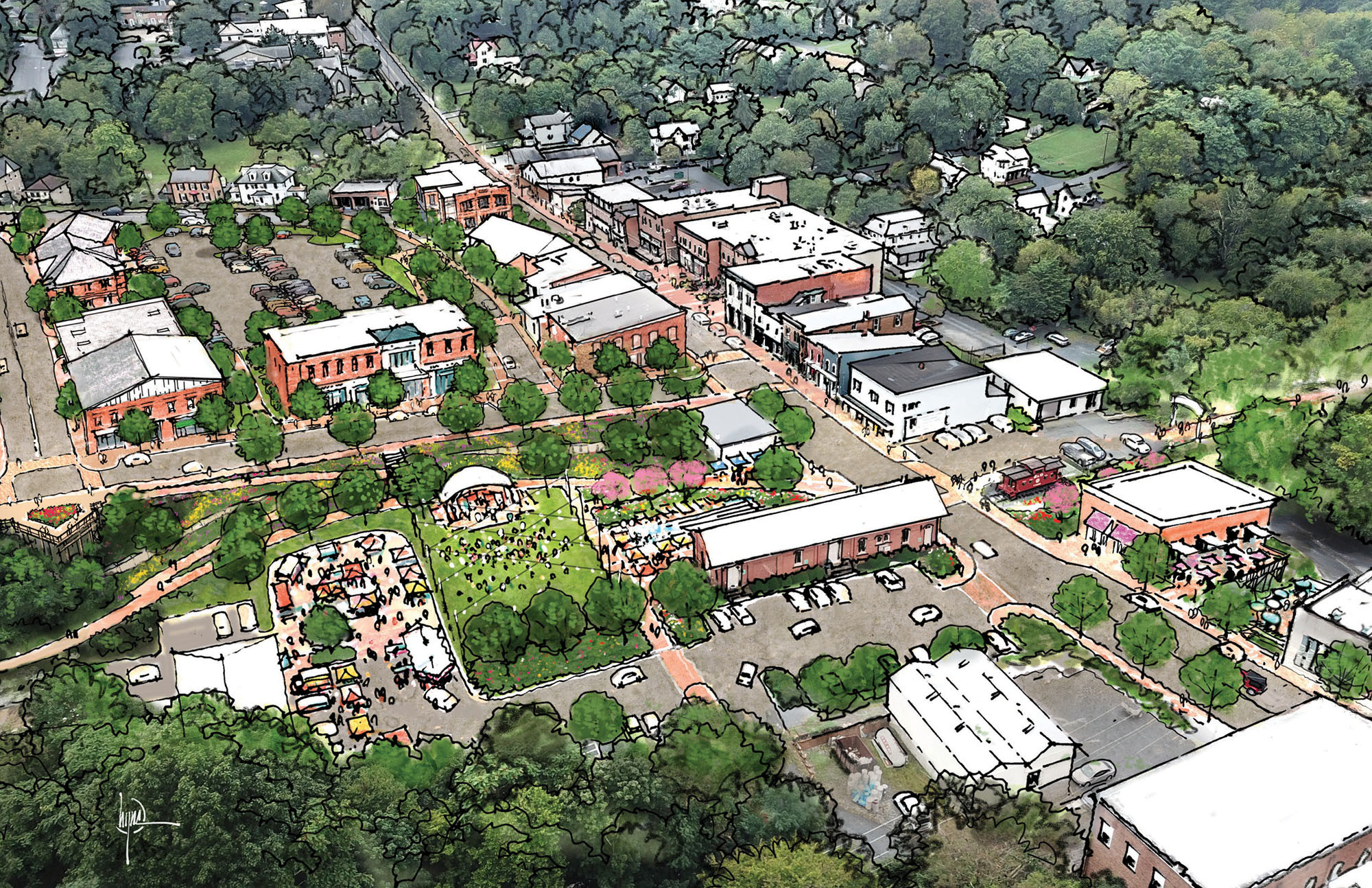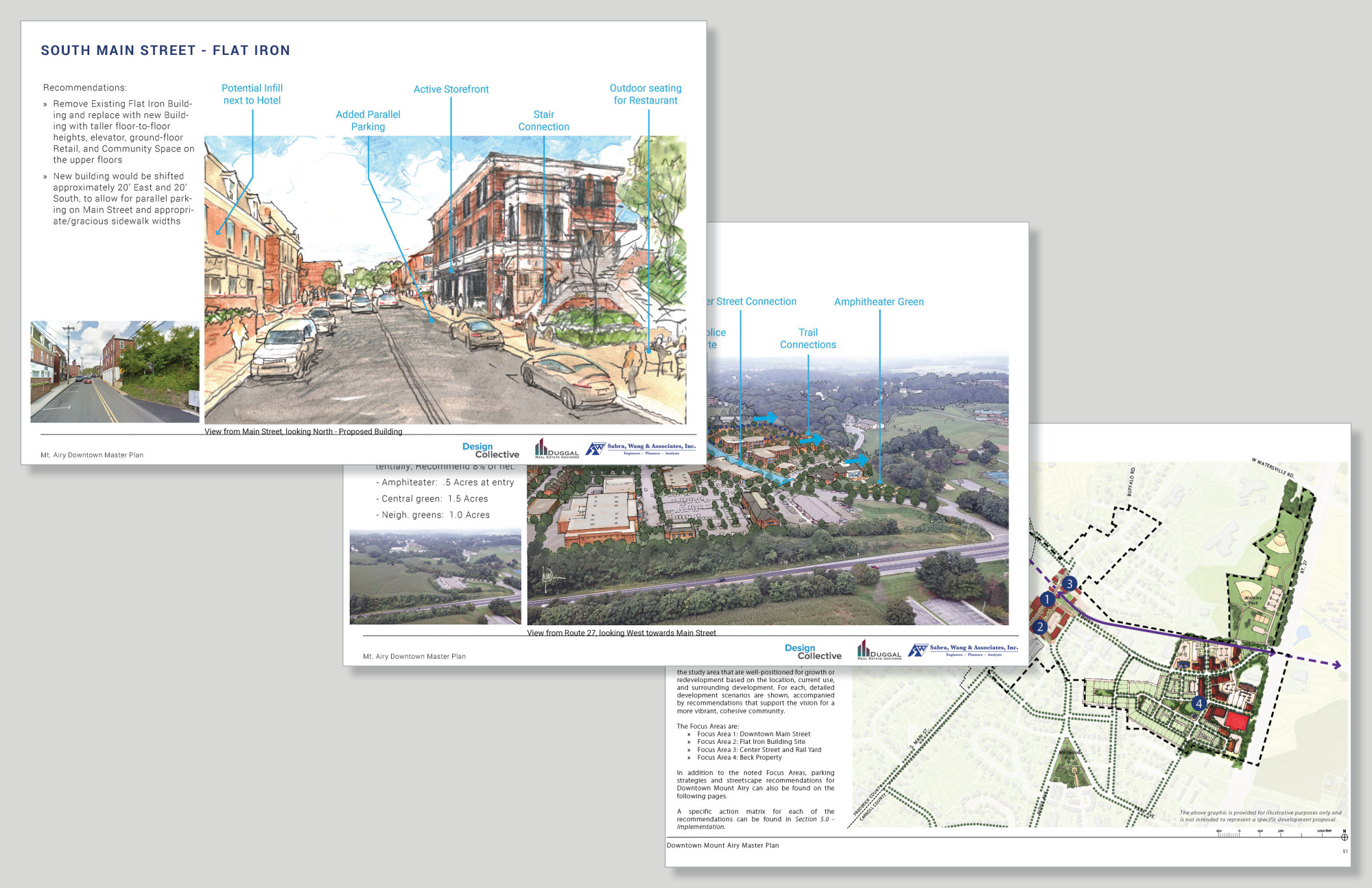 Design Collective was engaged by the Town of Mount Airy in the Spring of 2018 to prepare a Downtown Master Plan. Following several months of analysis, workshops, preparation of a market demand study, and transportation and parking analyses, the planning and design team facilitated a weeklong charrette. Stakeholders identified downtown goals and objectives while the design team prepared and evaluated solutions with immediate resident, business, property owner, and town staff input. The charrette guided master plan strategies for strengthening downtown businesses, improving pedestrian safety, converting excess parking areas into public parks for events, enhancing the streetscape, infilling downtown and Center Street with mixed-use development, rerouting Park Avenue, and extending Center Street to Route 27.