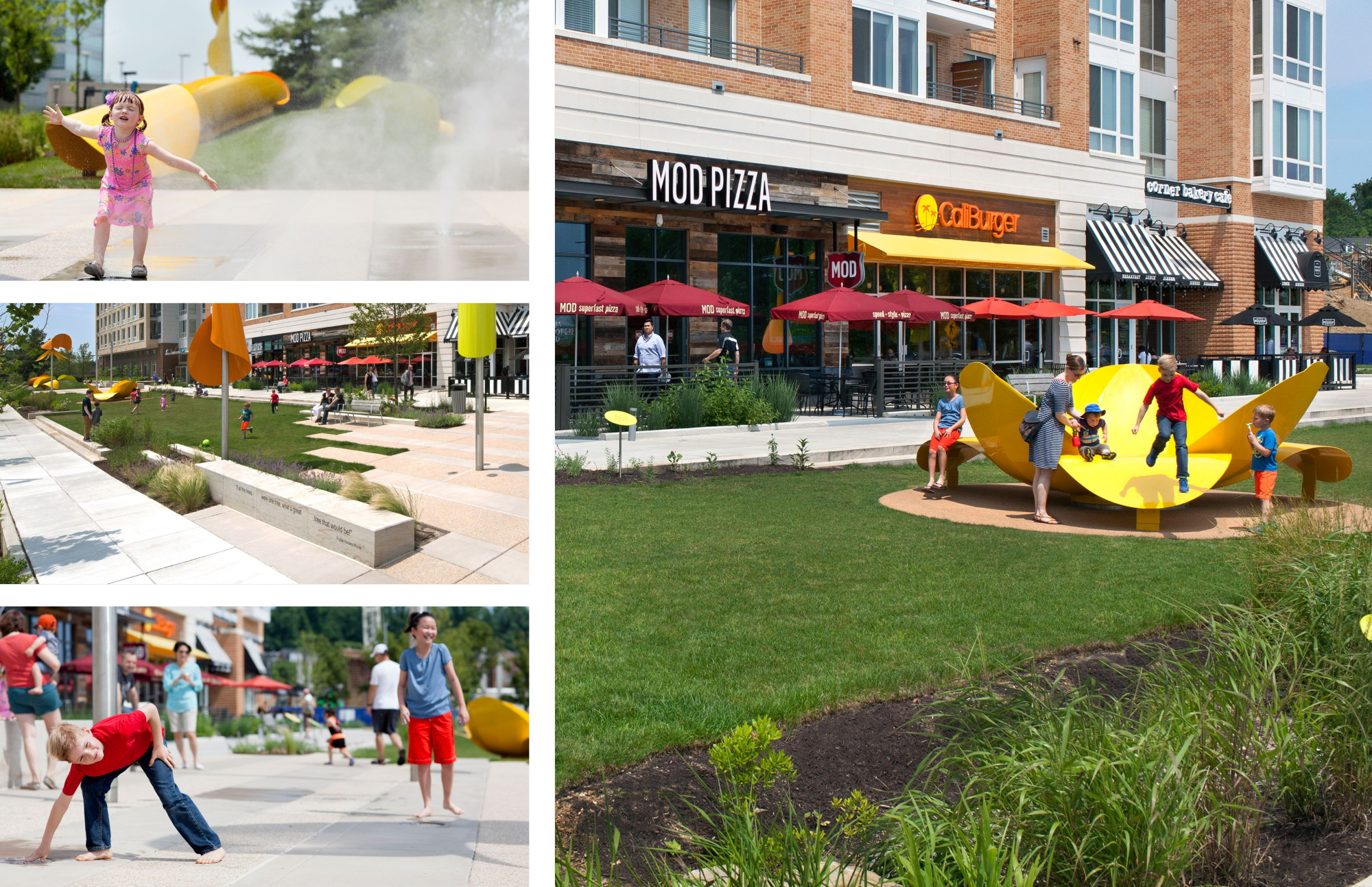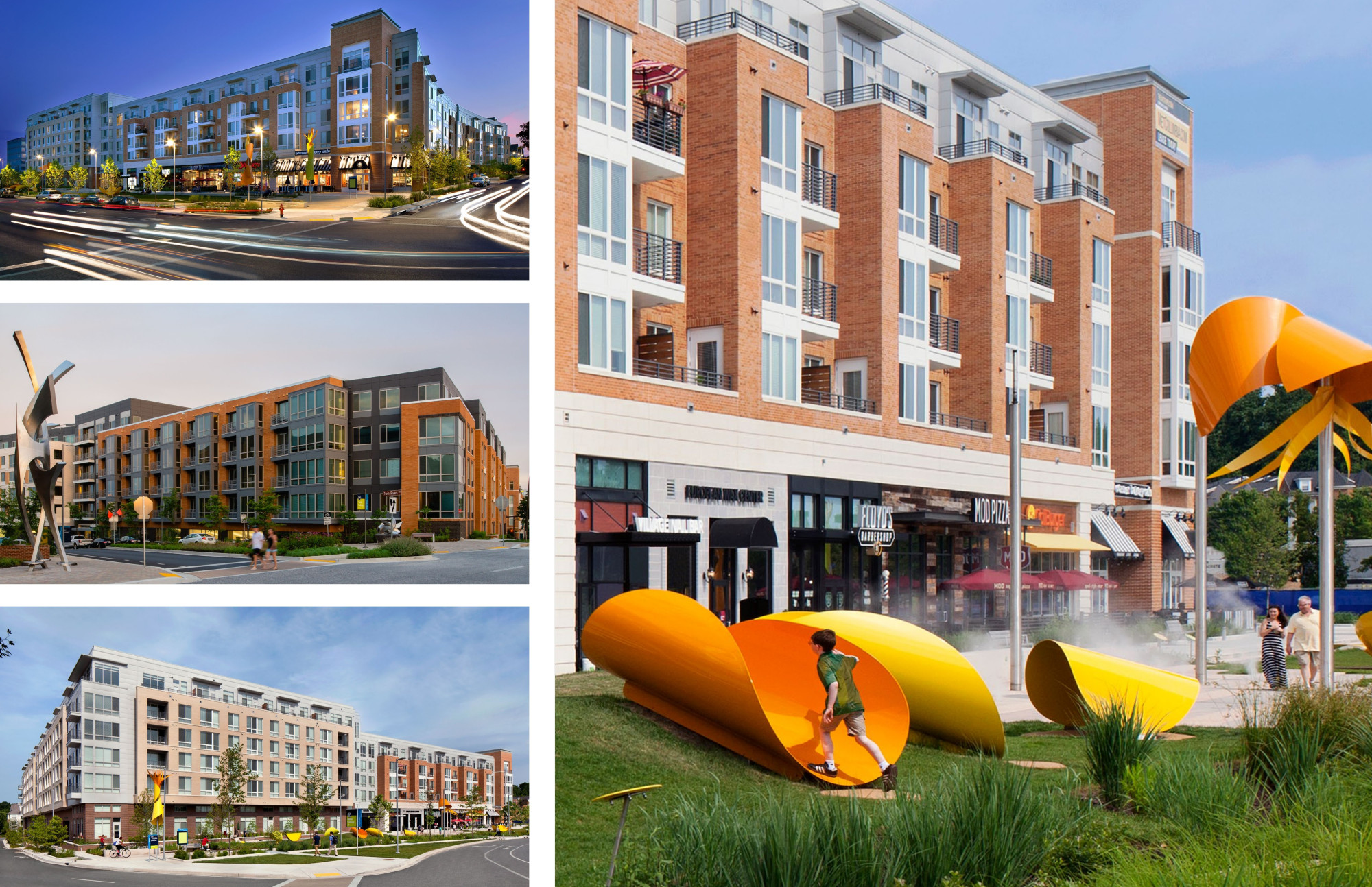 Following adoption of the Downtown Columbia Plan in 2010, The Howard Hughes Corporation engaged Design Collective to prepare small area plans and design guidelines for the Warfield District 2013, the Merriweather District 2015, and the Lakefront District 2019.These small area plans (neighborhood plans) include reconciliation of the appropriate mix of uses, densities/FAR, and building types (as governed by the Downtown Plan), a full traffic analysis, market demand and economic impacts and benefits analyses, public input sessions, and full Planning Commission presentations prior to final adoption. The plans and design guidelines have guided the implementation of several new streets and blocks, over 2M SF of mixed-use buildings (residential, office, and hotel), and new parks, squares and open spaces. Each district includes initial phases of innovative green infrastructure, enhanced environmental features (wetland mitigation and stream restoration, for example), on-street bicycle lanes, shared use paths, and public art. A new fine and performing arts center with upper floors of affordable housing will begin construction in 2022, addressing the community’s desire to support civic, arts, and public needs.