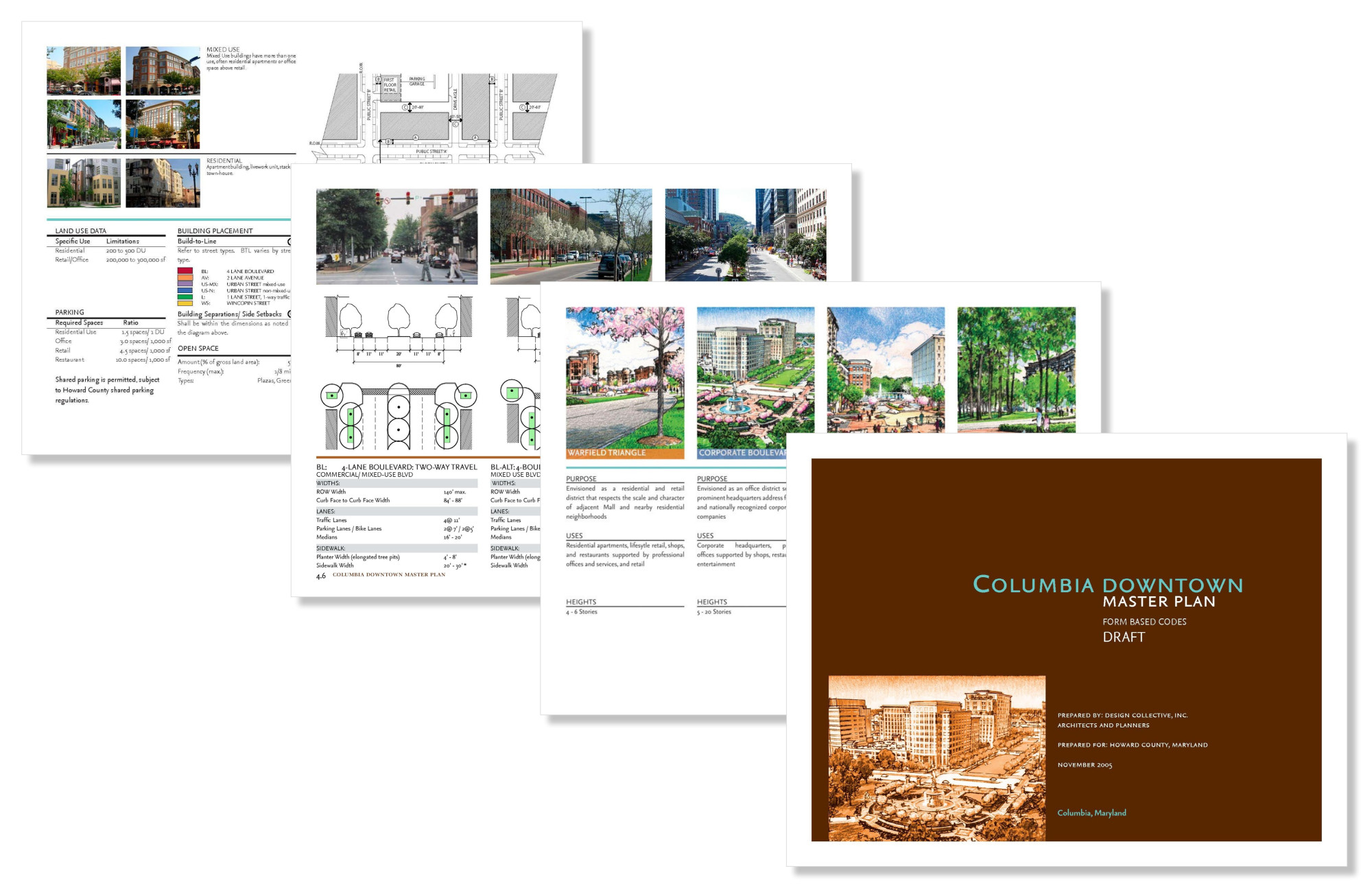 Design Collective was engaged by the Howard County Department of Planning in 2005 to establish a Small Area Plan and new 30-year vision for Columbia’s Town Center. The 18-month process included a week-long, 10-day, planning and design charrette with participation from over 1,000 residents, county stakeholders, property owners, developers and interest groups (public housing advocates, environmental groups, for example). The Plan was informed by a comprehensive market analysis, economic and fiscal impacts and benefits analyses, and traffic analyses. The Plan illustrates how the 500-acre Town Center could be transformed into a more dense, livable, and walkable, urban-like environment. The master plan received a 2006 CNU (Congress for New Urbanism) Charter Award.