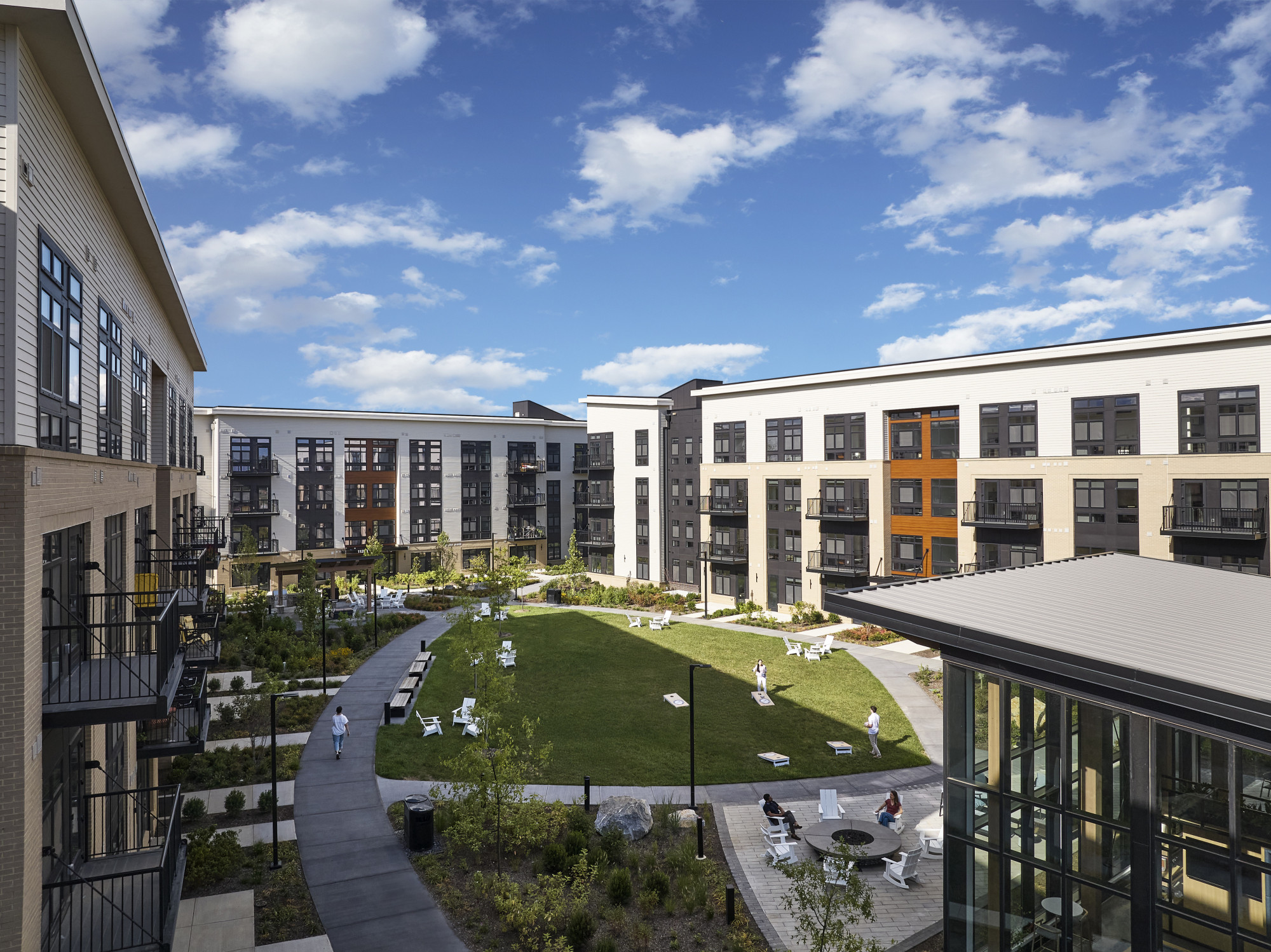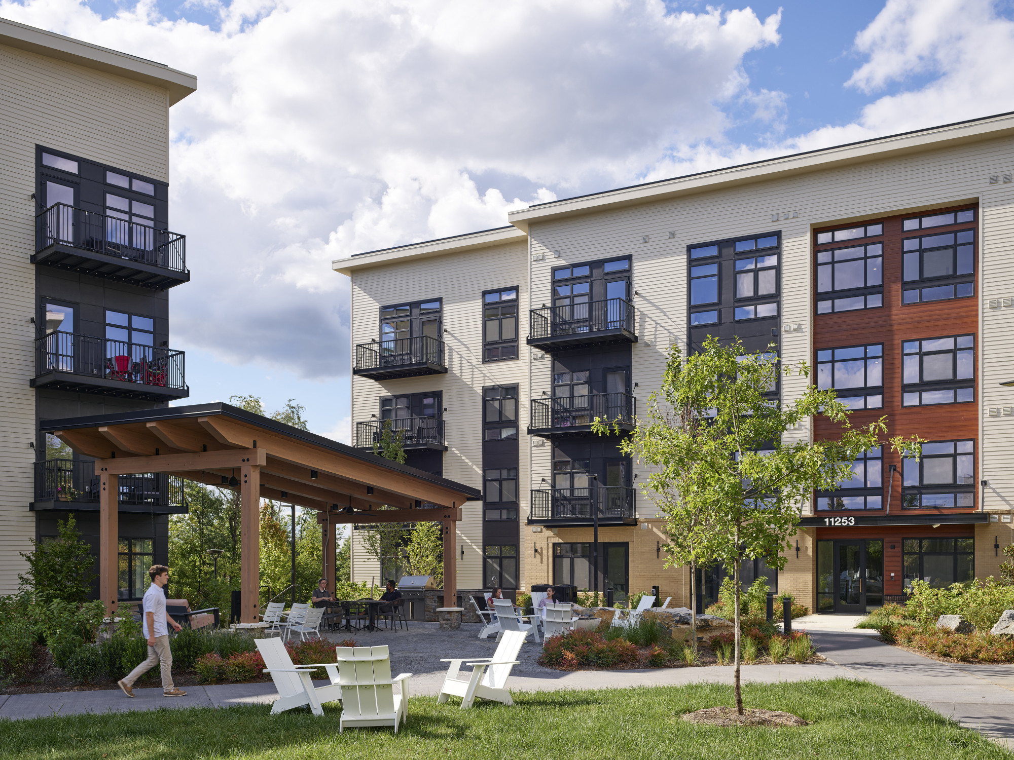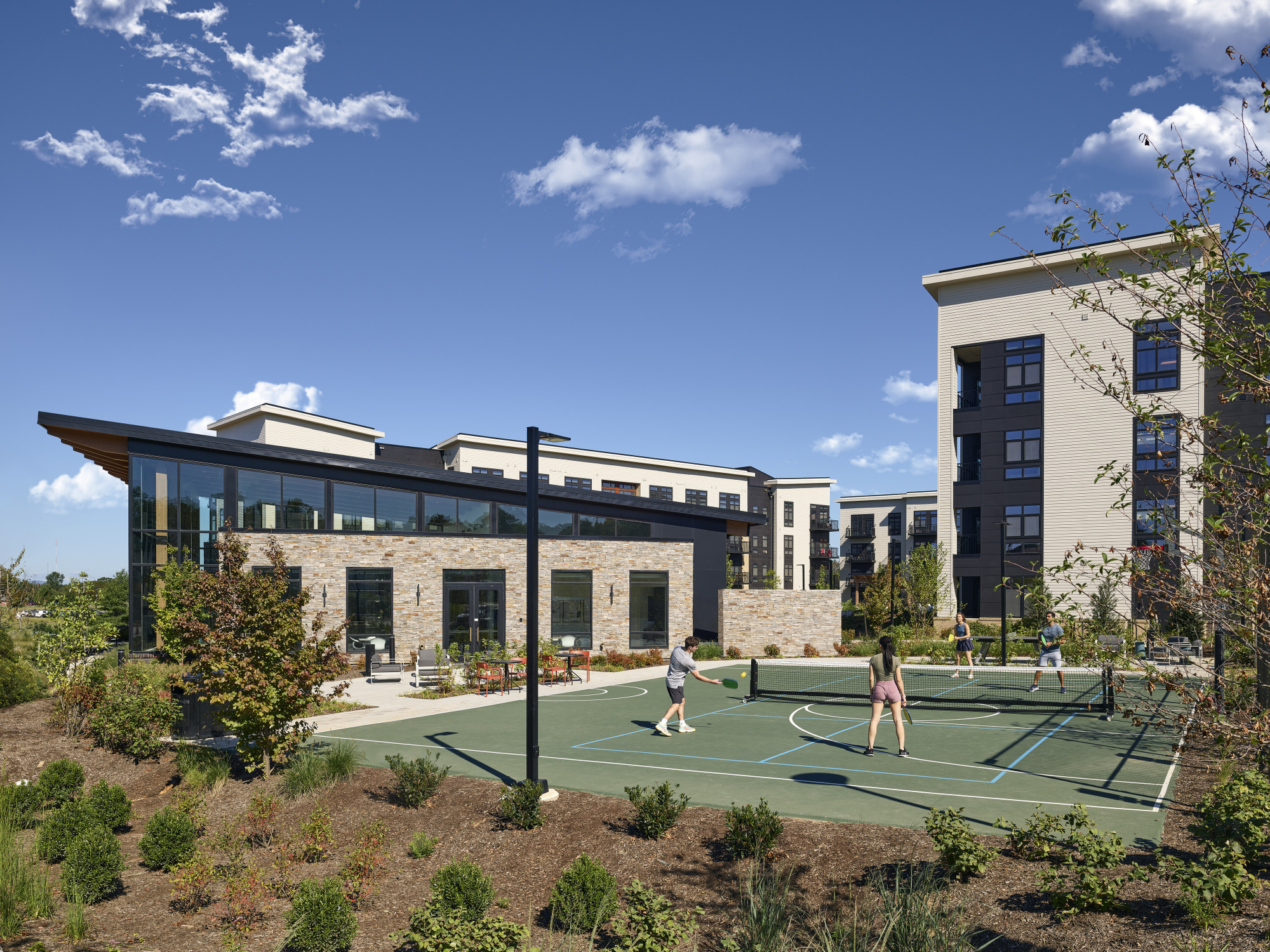 Meritus Health, Western Maryland’s largest health care provider, is looking to develop student housing accommodations to support their proposed Meritus School of Osteopathic Medicine (MSOM). 342 apartments distributed amongst five residential buildings and a common amenity building will sit on a heavily sloped, 28.5-acre site. These 4-storied residential buildings and the 1-story amenity building are organized around a central green space, to take advantage of existing site grade while respecting existing forest easements. Programmable outdoor spaces including a multi-use recreational space and dedicated bike path connecting the residences to MSOM campus promote an active lifestyle and wellness amongst residents. Energy efficient envelope design, access to daylight and views, integrating stormwater strategies into site design and biophilic design are all considerations.