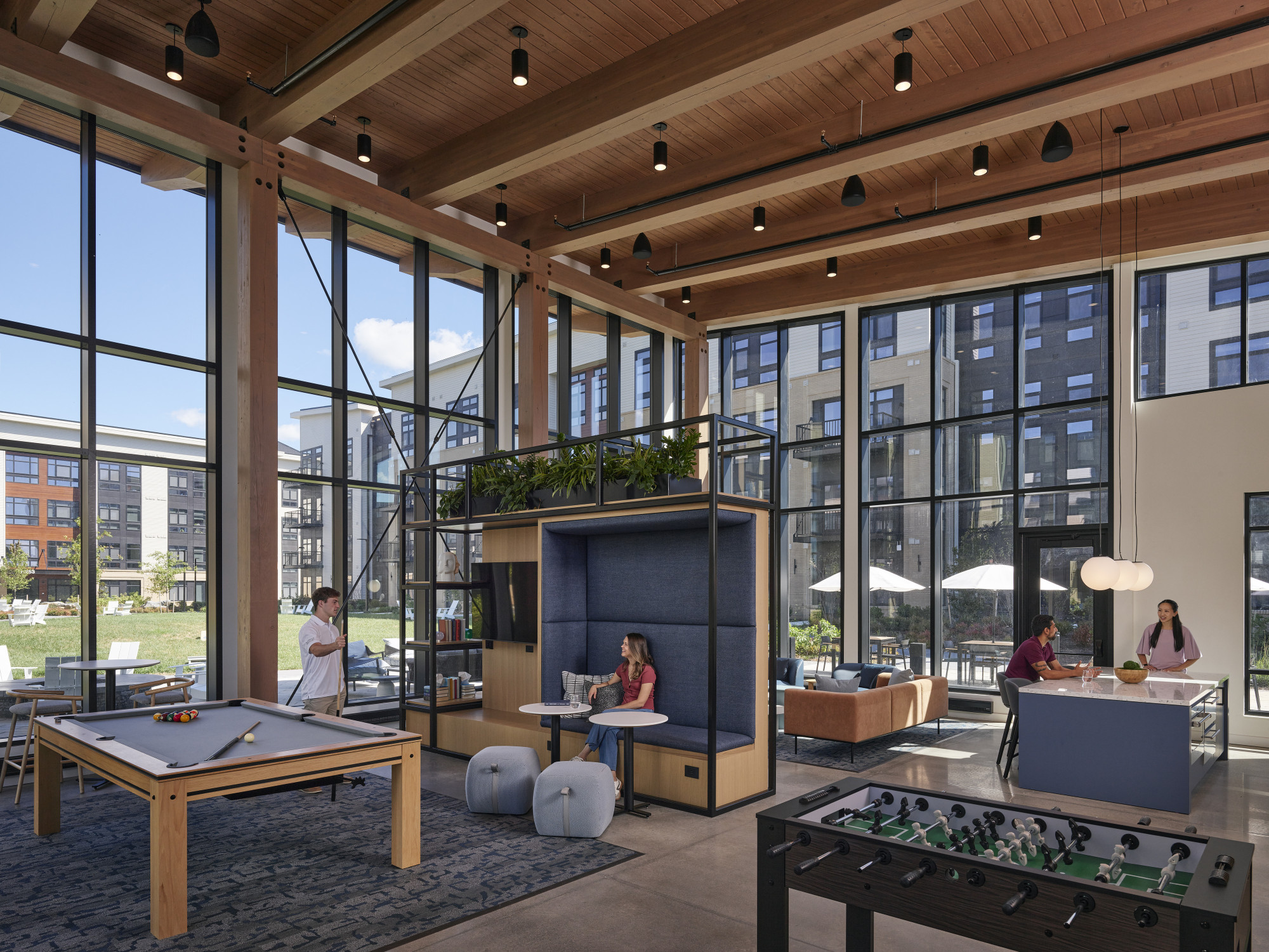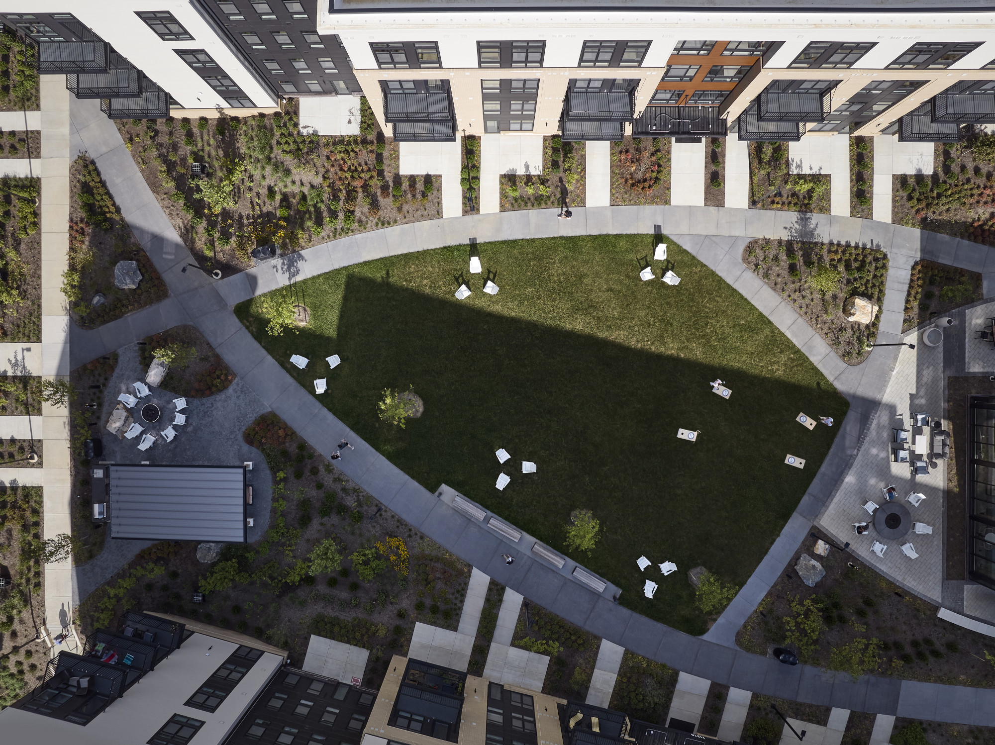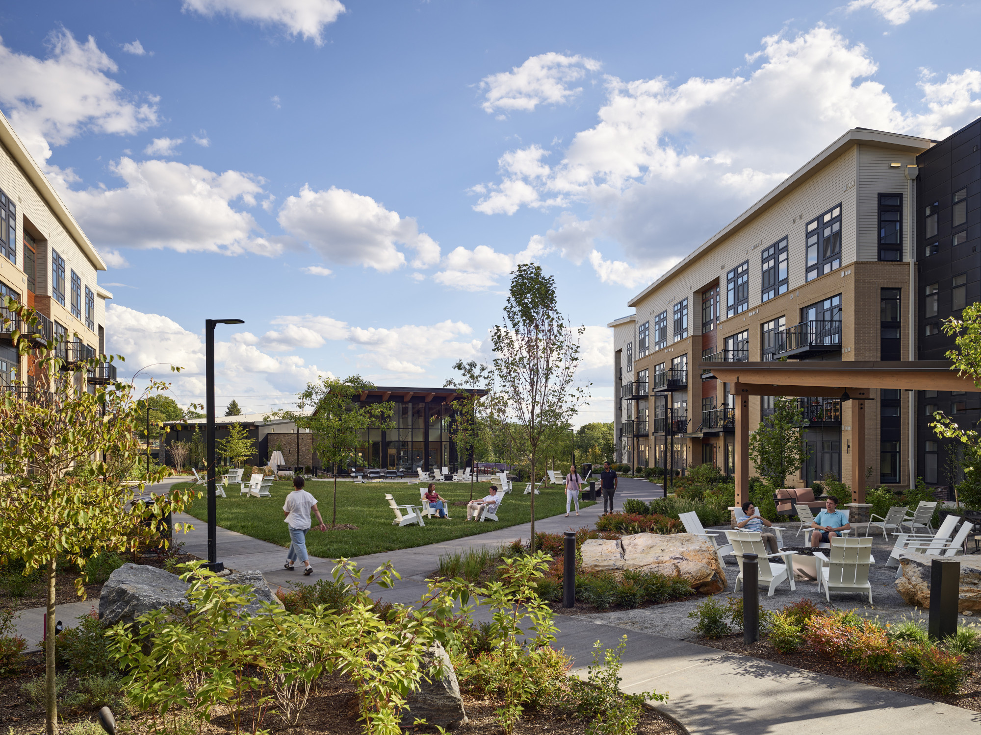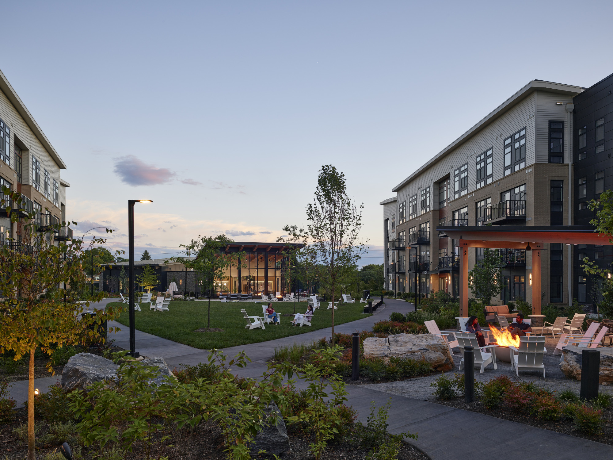 Meritus Health, Western Maryland’s largest health care provider, is looking to develop student housing accommodations to support their proposed Meritus School of Osteopathic Medicine (MSOM). 342 apartments distributed amongst five residential buildings and a common amenity building will sit on a heavily sloped, 28.5-acre site. These 4-storied residential buildings and the 1-story amenity building are organized around a central green space, to take advantage of existing site grade while respecting existing forest easements. Programmable outdoor spaces including a multi-use recreational space and dedicated bike path connecting the residences to MSOM campus promote an active lifestyle and wellness amongst residents. Energy efficient envelope design, access to daylight and views, integrating stormwater strategies into site design and biophilic design are all considerations.